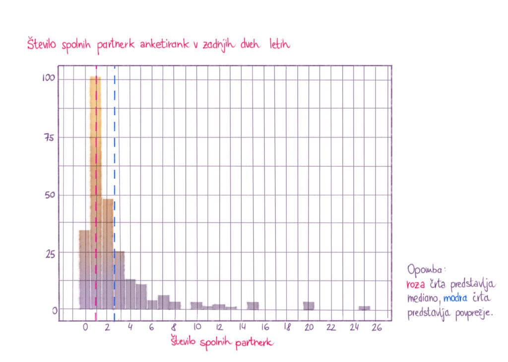 Večina nas je v zadnjih dveh letih spala z eno ali dvema osebama. Največje število spolnih partnerk v dveh letih je bilo 25.